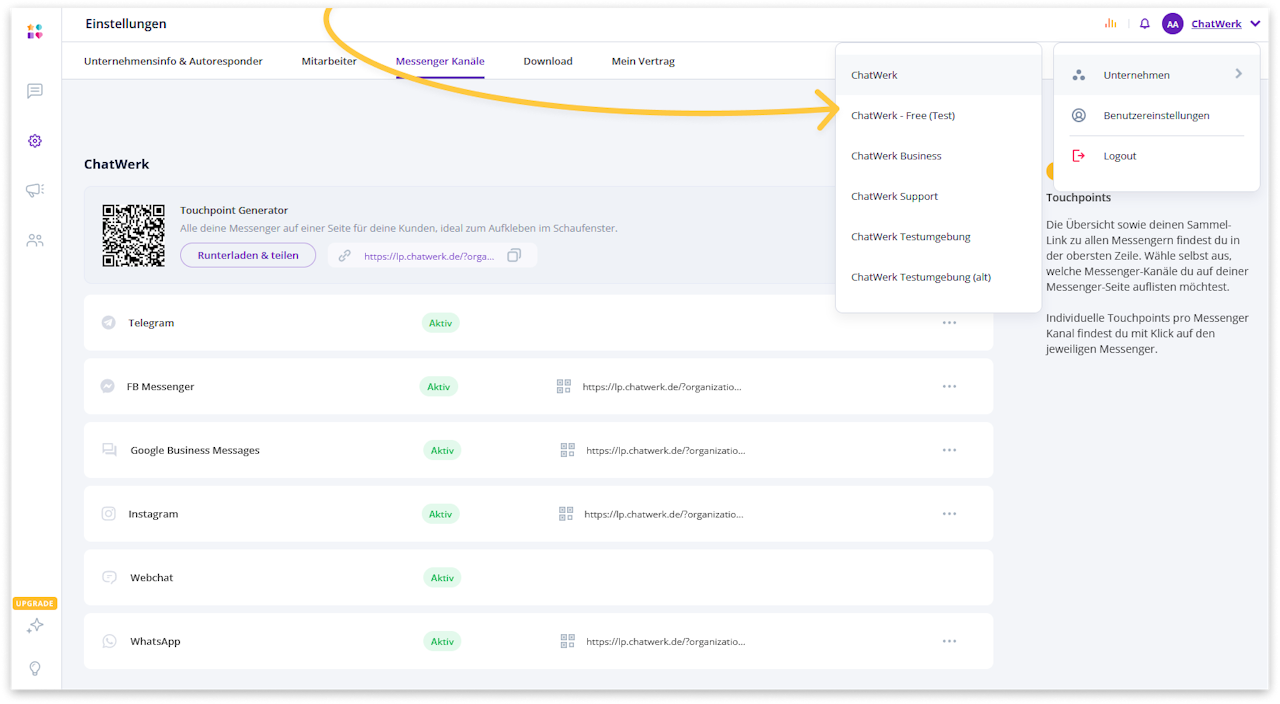 Um ein weiteres Paket zu buchen, kontaktiere bitte unseren Support über den Chat 💬 oder E-Mail 📧 support@chatwerk.de