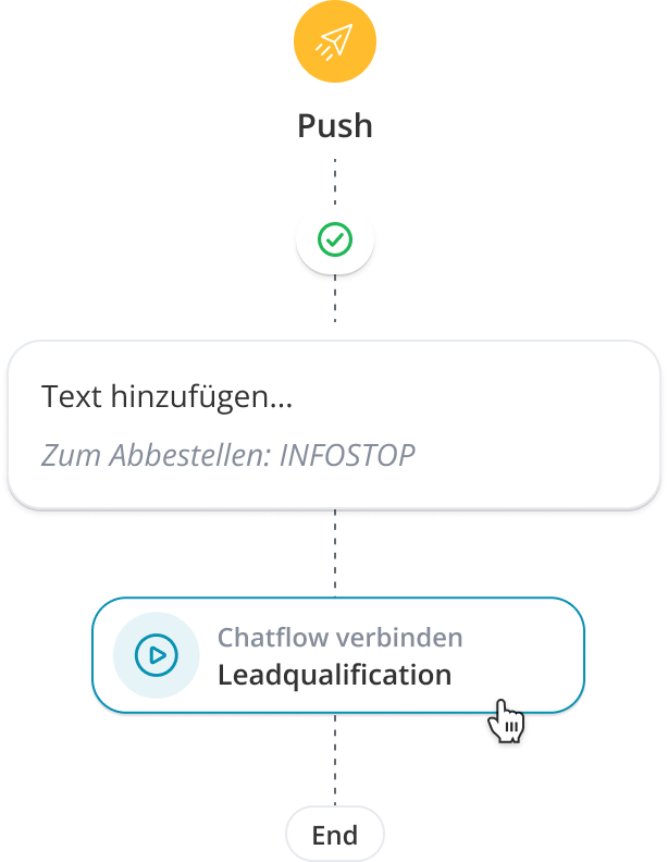 Sobald die Aktion erreicht wird, wird der Nutzer automatisch in den gewählten Ziel-Chatflow überführt.