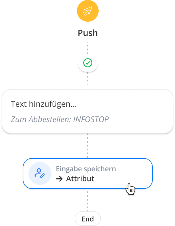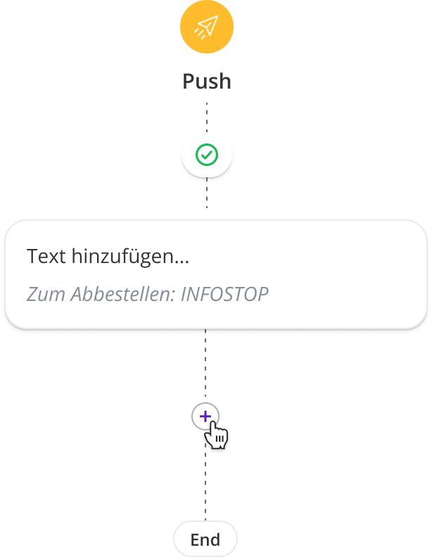 Wenn du zusätzliche Schritte im Flow einfügen möchtest, klicke einfach auf das kleine Pluszeichen unter deiner Nachricht.