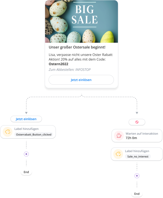 Wie bereits mit dem Campaign Manager, kannst du mit dem Chatflow Builder auch simple Newsletter versendet.