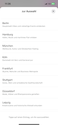 👉 Ein Reiseanbieter fragt seine Kunden nach ihrer Stadt: