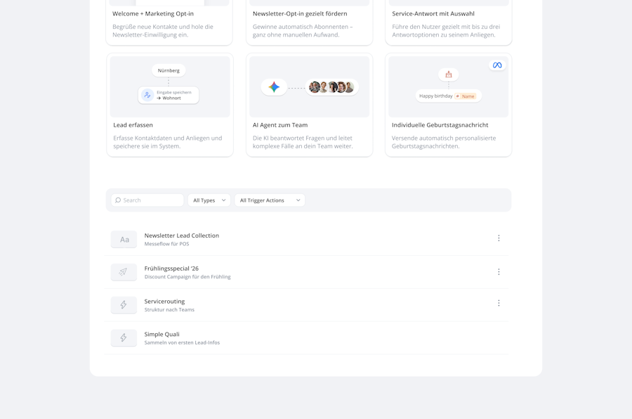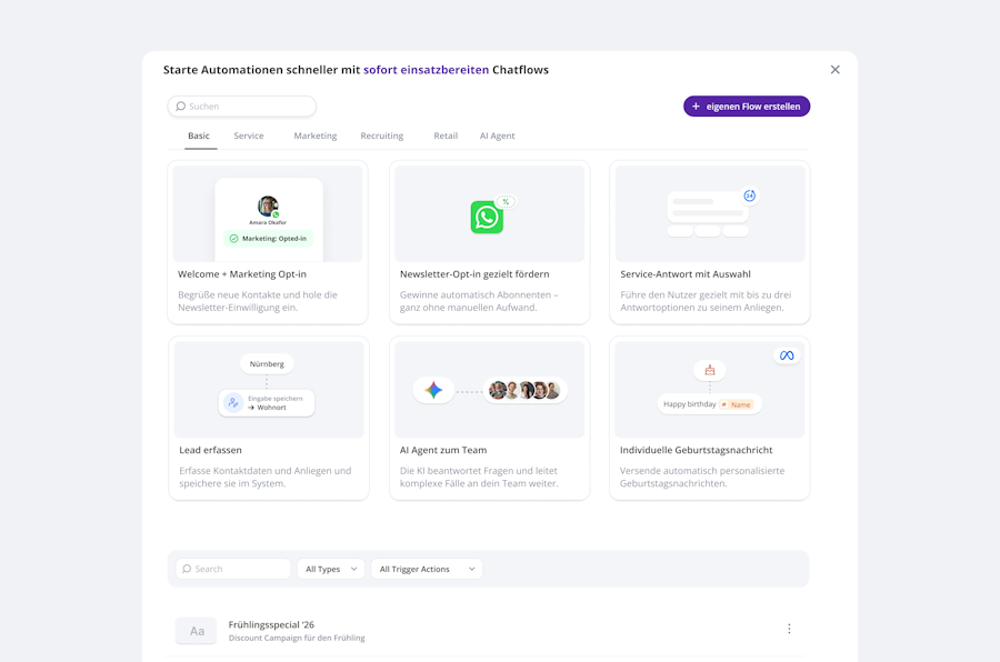 Du hast einen Chatflow gebaut, der funktioniert? Dann spar ihn dir für später. Eigene Flows als Template zu sichern bedeutet: weniger Arbeit bei der nächsten Kampagne, einheitliche Prozesse und eine Vorlage, die du beliebig oft wiederverwenden kannst.