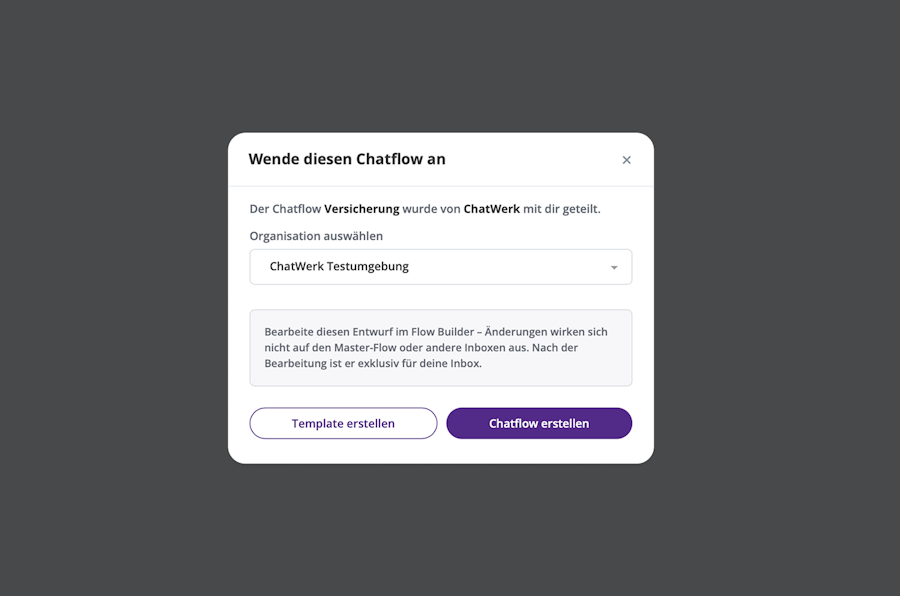 Wer den Link bekommt, kann den Flow direkt als Template oder neuen Chatflow übernehmen.