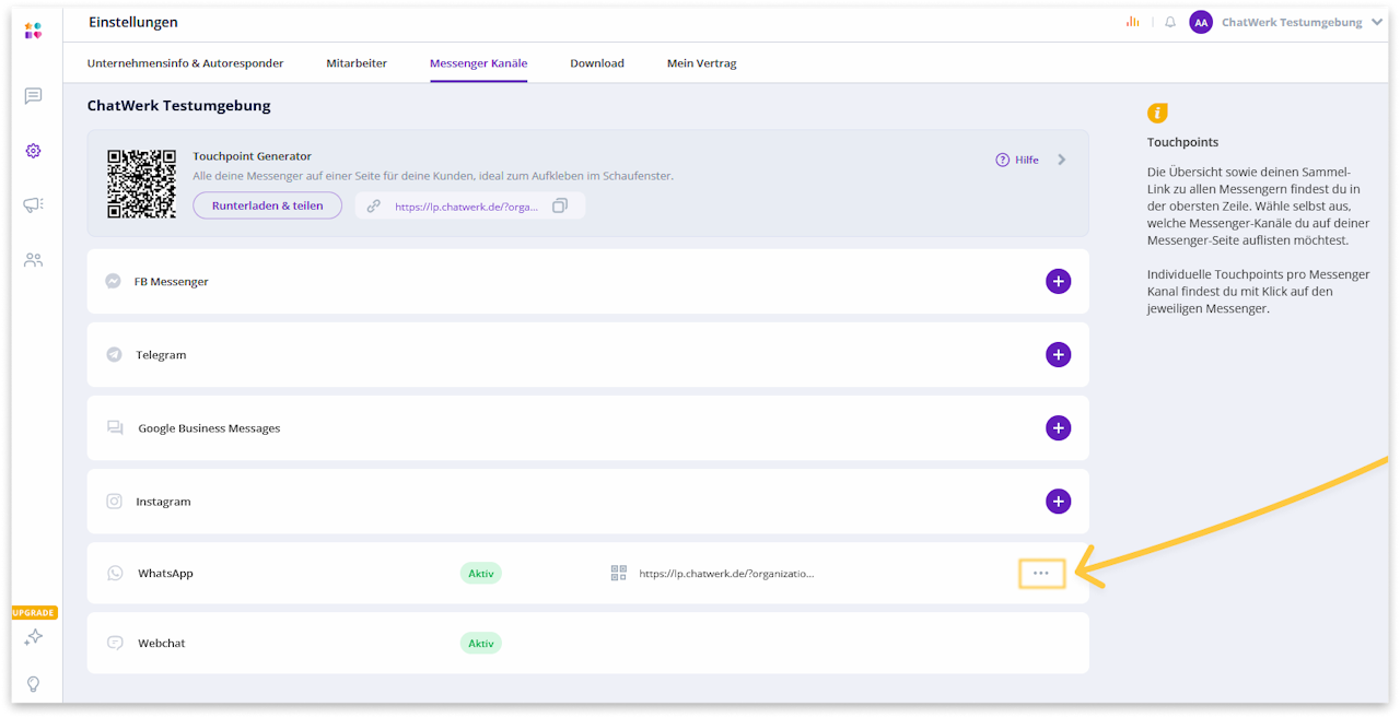 https://inbox.chatwerk.deGehe auf ⚙️Einstellungen → Messenger Kanäle